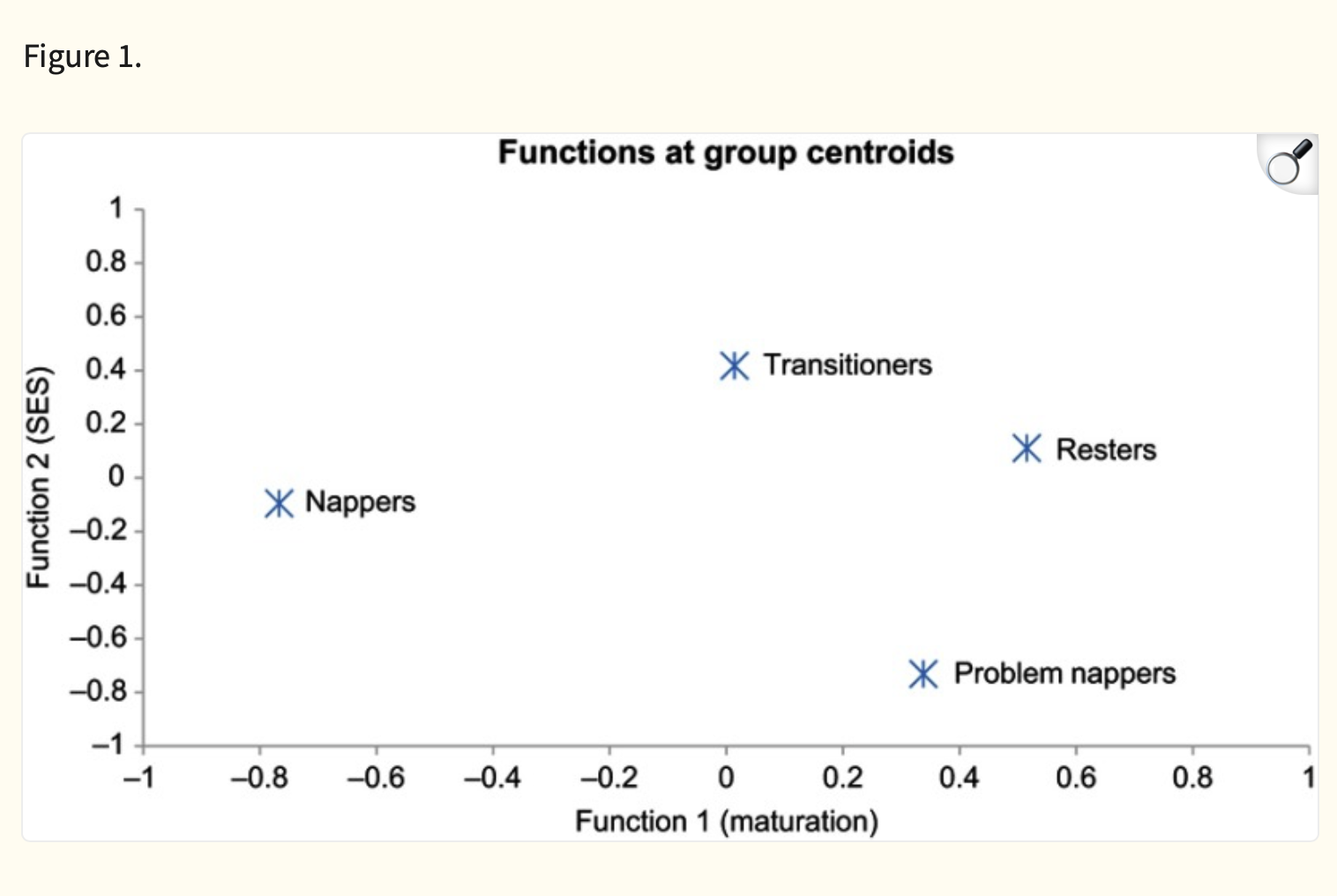 Essentially, the variables that could be affecting the nap time were separated into three functions based on importance. Researchers found that functions 1 and 2 were the most significant, which meant that these two variables created clear distinctions between groups.